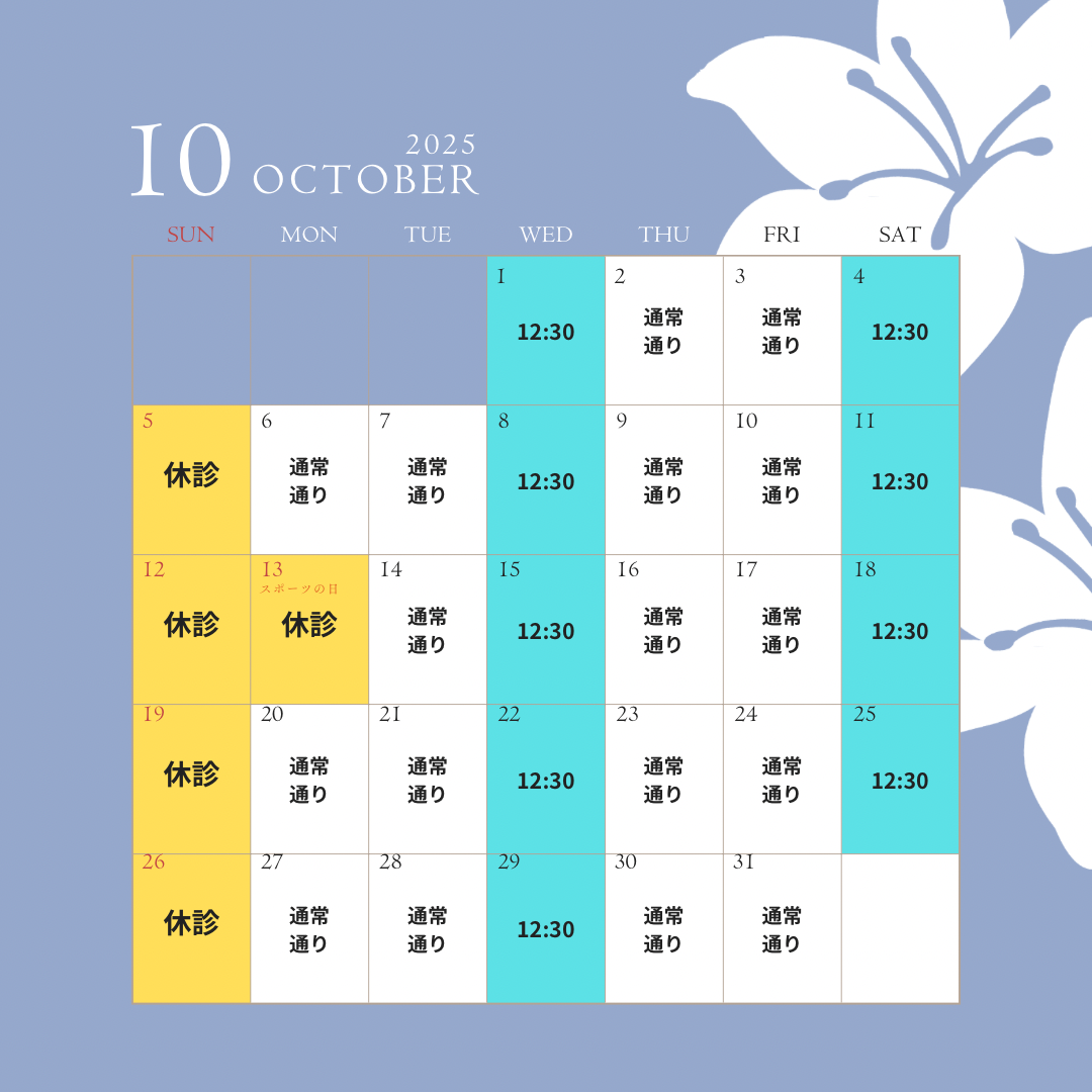 ※水、土は日程が他日と異なりますのでご注意ください。 ※水曜午後は訪問診療を行っています。詳しくはお問い合わせください。 |